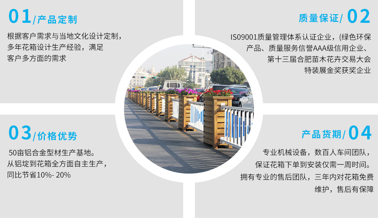 •       上海曦信環(huán)??萍脊煞萦邢薰境闪⒂?013年,是一家專業(yè)的馬路花箱供應(yīng)商。本公司自成立以來,經(jīng)歷了奠定基礎(chǔ),穩(wěn)步發(fā)展的過程。品牌已形成市場(chǎng)優(yōu)勢(shì),現(xiàn)正處于乘勢(shì)而上發(fā)展壯大的階段。創(chuàng)立先進(jìn)的經(jīng)營(yíng)理念和企業(yè)文化,生產(chǎn)經(jīng)營(yíng)規(guī)模不斷發(fā)展壯大。公司主要從事馬路花箱,花箱護(hù)欄,木紋鋁合金花箱,座椅花箱,鋁板花箱、不銹鋼花箱、鋁合金護(hù)欄、鋁合金葡萄架,公園座椅,戶外果皮箱垃圾桶、鋁合金葡萄架等金屬建材產(chǎn)品的生產(chǎn)和銷售...